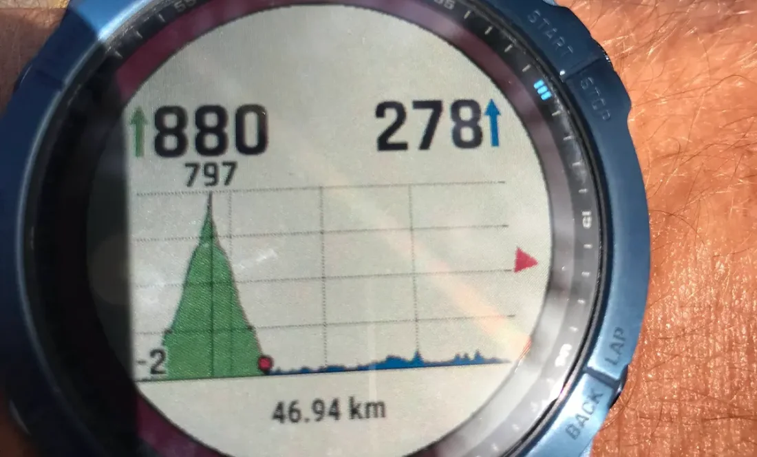 Samuti näitab kell mulle rajaprofiili ning tõusude ja laskumiste kaupa täpselt, kui palju on käimasolevat tõusu või laskumist jäänud võtta. Rajaprofiili teadmine aitab vedeliku tagavara ja toituvaru planeerida – nt tõusu võtmiseks kulub oluliselt rohkema aega, energiat ja juua kui laskumisel. Muuhulgas hõlbustab see toitumise taktikat ajastada.
