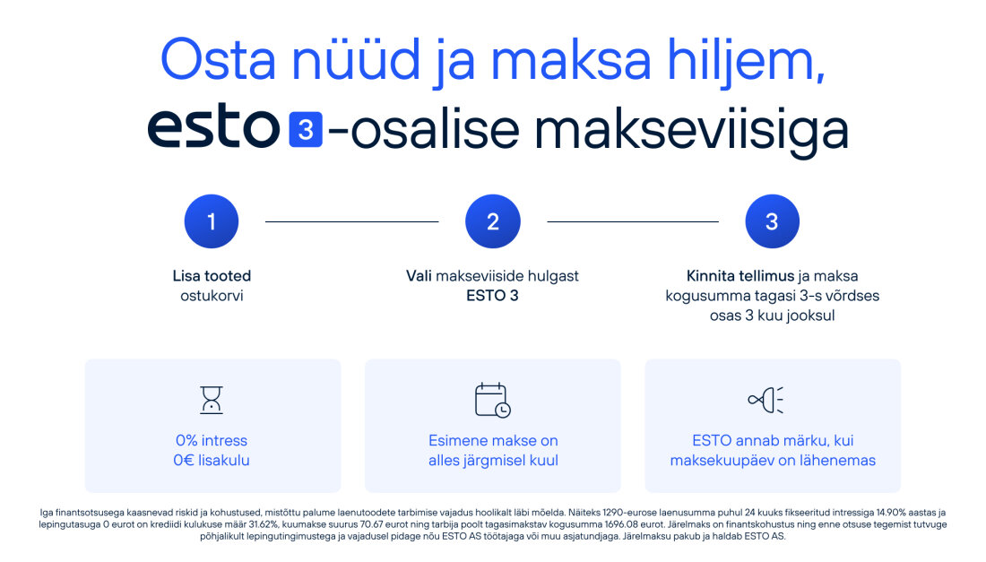 ESTO 3! Maksa kolmes osas, ilma ühegi lisakuluta!