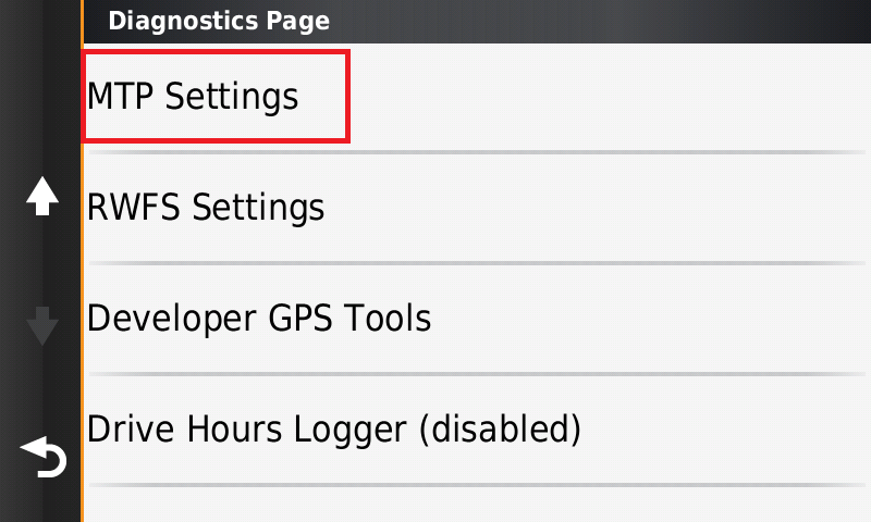 Menüüst vajuta alla noolt, kuni leiad MTP settings.