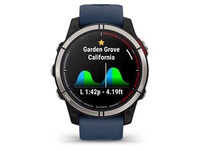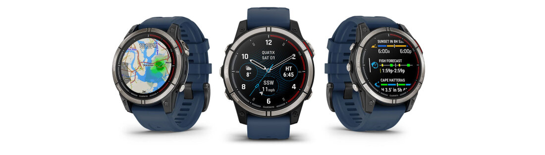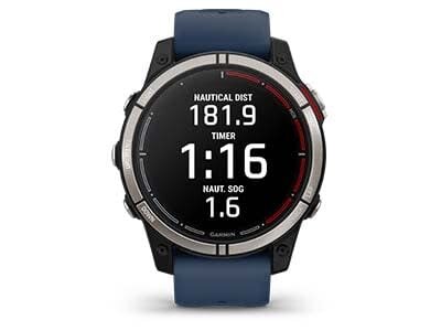 | Kui ühendad quatix® 7 Sapphire ühilduvate mereseadmetega, saad otse randmel vaadata näiteks vee sügavust, mootori pöördeid minutis, tuuleinfot, kohandatud andmeid jpm. | Et sul oleks veel olles olukorrast parem ülevaade, hoiatab quatix® 7 Sapphire sind peatsetest loodete muutustest ja ankru lohisemisest. | Pole vaja kalasaagi märkimiseks tüüri juurde tagasi minna. Kasuta oma käekella ning sul on võimalik igal pool paadis plotteri vahepunkte märkida. |