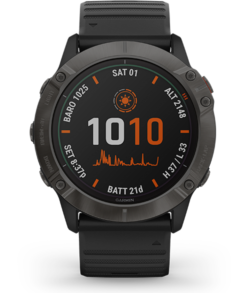 Esimene Garmin kell millel on päikeselaadimine. fenix 6X Pro Solar ei pane limiite sellele, kui kaugele sa võid minna. 1,4 tolline Power Glass ekraan kasutab päikeseenergiat et pikendada aku tööaega.