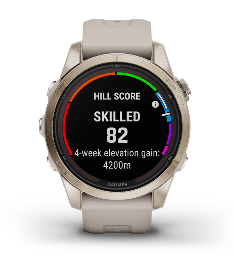 | Kuni 14 päeva nutikellarežiimis, sh tundi otsest päikesevalgust (50000 luksi) päevas, ja kuni 46 tundi GPS-režiimis päikeseenergiaga laadimisega (eeldusel, et kella kasutatakse kogu aeg 50000 luksi juures). | Valguse muudetav intensiivsus ja punane ohutusvalgus tagavad pimedas treenimise ajal parema ülevaate olukorrast ning mugava valguse siis, kui seda vajate. Vilkumisrežiim ühildub isegi sinu jooksurütmiga. | See funktsioon, Mõõdab sinu jooksuvõimet mäest üles jooksmise ajal ja hindab sinu edenemist aja jooksul maksimaalse hapnikutarbimise ning treeningajaloo põhjal. See mõõdab sinu jooksuvõimet järskudel tõusudel ja vastupidavust jooksmise ajal pikkadel tõusudel ning tagab andmed aja jooksul kogunenud tulemuste põhjal. |