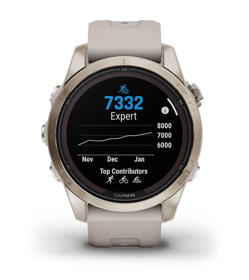 Kasuta igat tundi parimal võimalikul moel täiustatud treeningfunktsioonide, ööpäevaringse tervise ja heaolu jälgimise ning päikesepaneeli Power Sapphire™1 toel üle kuu aja kestva aku abil. See tugeva korpusega kell sobib kandmiseks väiksematel randmetel.