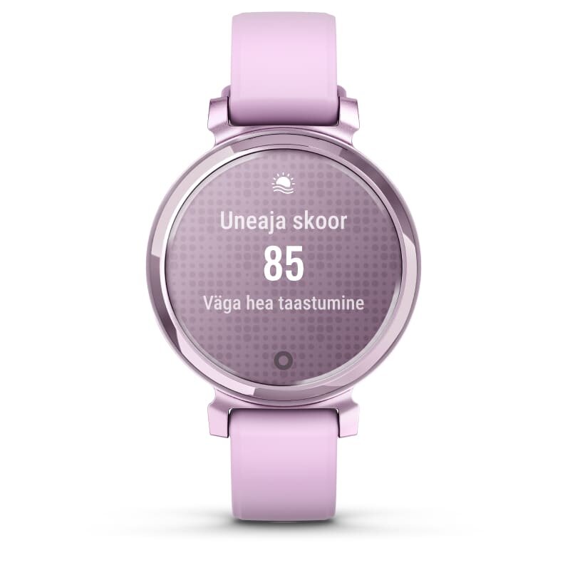 | Sellel iga välimusega suurepäraselt sobival väiksel ja stiilsel nutikellal on metallkorpus ja kaunis mustriga sihverplaat. Lisaks toob Lily 2 kiire puudutuse või randmepöörde järel nähtavale nutikella heleda ekraani. Võid valida erinevate 14 mm kiirkinnitusega kellarihmade vahel, sh silikoon, nailon ja nahk. | Energiatasemete kuvamine kogu päeva jooksul silm peal, et teaksid, millal keha on puhanud ja tegevuseks valmis või kurnatud ja vajab puhkamiseks kosutavat und. | Vaata oma unekvaliteedi hinnet ning parema une soovitusi. Jälgi ka unefaase ning pulsisagedust1, stressitaset, verehapniku sisaldust2 ja hingamist. |