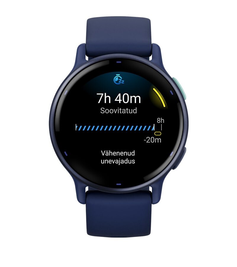 | Saad oma uinakuid automaatselt logida või jälgida, et näha, kuidas need su kehale kasu toovad ning milline peaks olema nende ideaalne aeg ja kestus. | Mõista oma üldist terviseseisundit paremini magamise ajal mõõdetud pulsisageduse vaheldumise abil. | vívoactive 5 nutikell mõõdab pidevalt sinu pulsisagedust et oleksid sellest ööpäevaringselt teadlik1. |