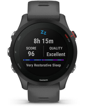 | Nutikella režiimis kuni 14 päeva ja GPS-režiimis kuni 30 tundi vastupidav aku annab sinu igapäevasest tervisest ja ööunest katkematu pildi. | Elegantne kujundus ja 49g raskus jätavad mulje, et sa ei kannagi seadet Forerunner® 255 – see jääb tähelepanuta isegi magamise ajal. | See kell on hõlpsalt kasutatavate nuppude ja silikoonrihmaga kohe kantav ning tänu Corning® Gorilla® Glass 3 klaasile ka vastupidav. |