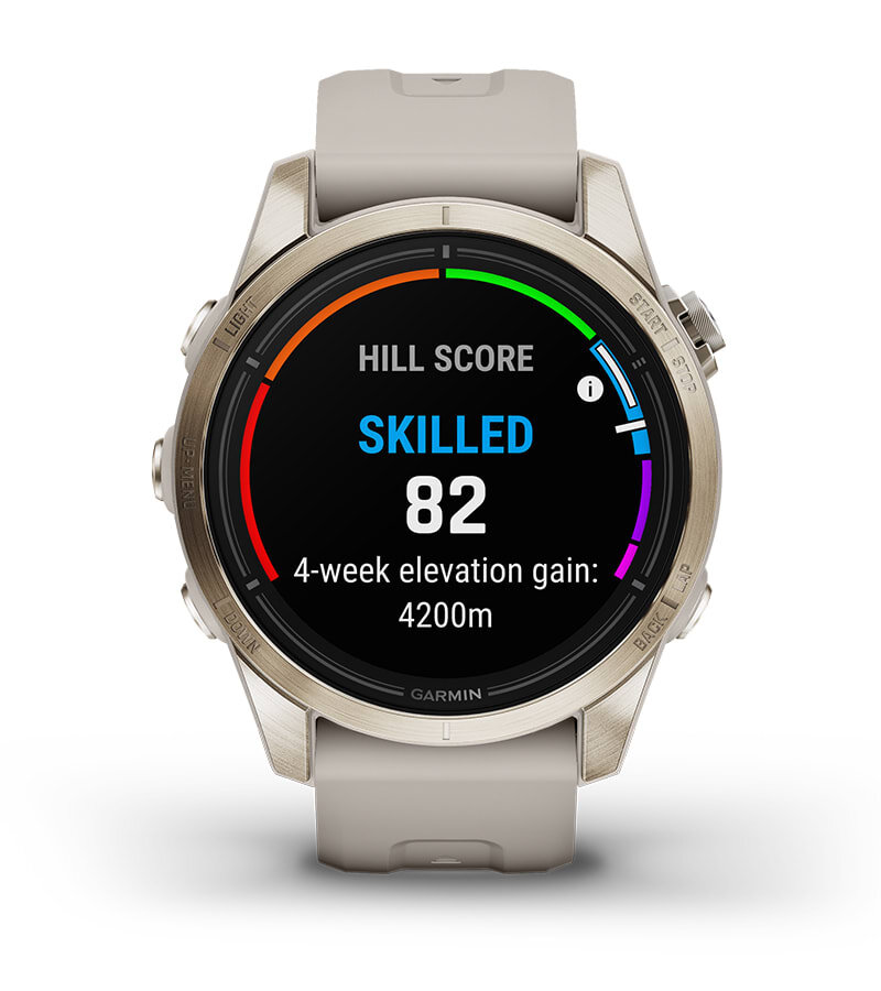 | Kuni 10 päeva nutikellarežiimis või kuni 20 tundi GPS-režiimis. | Valguse muudetav intensiivsus ja punane ohutusvalgus tagavad pimedas treenimise ajal parema ülevaate olukorrast ning mugava valguse siis, kui seda vajate. Vilkumisrežiim ühildub isegi sinu jooksurütmiga. | See funktsioon, Mõõdab sinu jooksuvõimet mäest üles jooksmise ajal ja hindab sinu edenemist aja jooksul maksimaalse hapnikutarbimise ning treeningajaloo põhjal. See mõõdab sinu jooksuvõimet järskudel tõusudel ja vastupidavust jooksmise ajal pikkadel tõusudel ning tagab andmed aja jooksul kogunenud tulemuste põhjal. |
