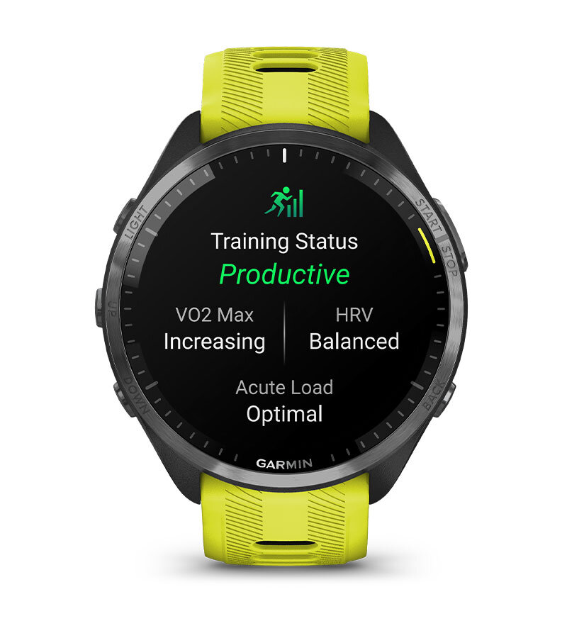 Ole treeningsoovituste, igapäevased soovituslike treeningute ja raja andmetel, ilmateatel ja jõudlusel põhinevate lõpetamisaja ennustustega järgmiseks võistluseks (sh maratoniks) valmis. Järgi isikupärast treeningukava. Need kohanduvad pärast iga jooksu ja sobituvad sinu soorituse ja taastumisega, võttes arvesse Garmin Connect™ kalendris ees ootavaid võistlusi. Vaata indikaatoreid, nagu HRV-olek, sinu hiljutine treeningute ajalugu ja sooritus, saad hõlpsasti ülevaate oma üldisest pingutusest ja sellest, kas treenid tõhusalt, oled heas vormis või kurnatud.