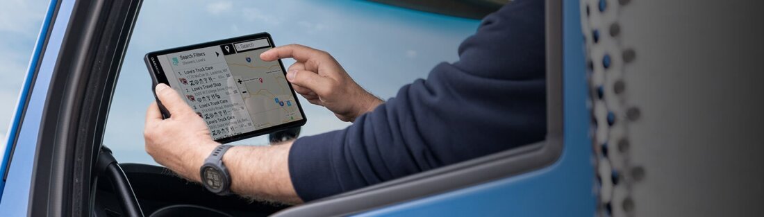 | Ere 7″ puuteekraan pakub teravat suure eraldusvõimega pilti. | Sisesta lihtsalt oma sõiduki profiil (kohandatav kõrguse, kaalu, pikkuse, laiuse ja ohtlike materjalide alusel), et leida sinu veokile ja koormale parimaid veokisobilikke marsruute2. | BirdsEye’ satelliitpildid aitavad saabumist sujuvalt planeerida tänu laadimisplatvormide, veokisissepääsude ja turvaväravate aerovaadetele. |