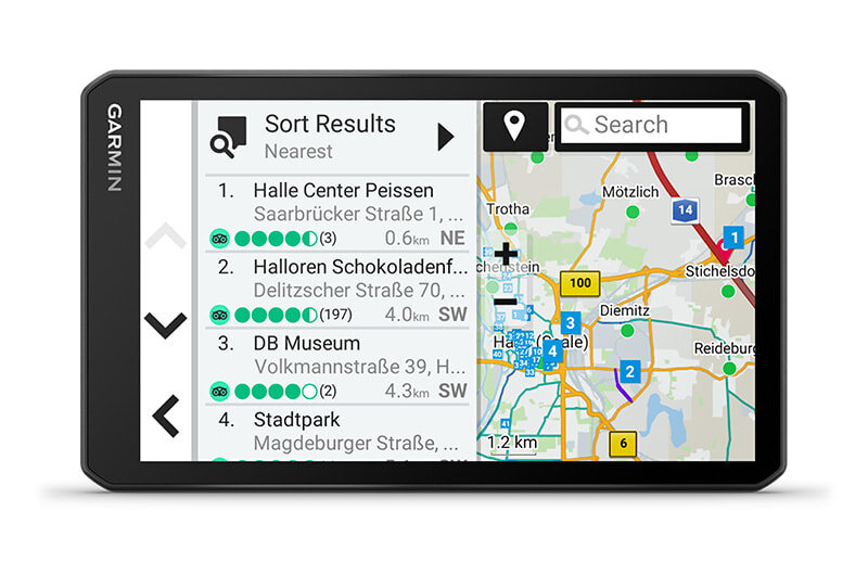 | Kuva teenuse Tripadvisor® arvustused hotellide, restoranide ja vaatamisväärsuste kohta, mis jäävad sinu marsruudile või sihtkoha lähedale. Eellaaditud Foursquare®-i sisu abil on miljonite uute ja populaarsete kohtade leidmine lihtne. | Sõida kaardiuuenduste ja üksikasjalike Euroopa ja Lõuna-Aafrika tänavakaartide abil enesekindlalt | Näe BC™ 50 juhtmevaba tagurduskaamera abil (müüakse eraldi), mis on su veoki taga. |