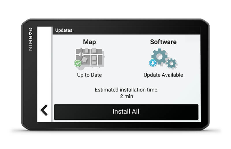 | Vajad juhiseid? Lihtsalt küsi. Garmini häälassistent vastab sinu suulistele päringutele, et sa ei peaks käsi roolilt tõstma ja saaksid rahulikult liiklust jälgida. | Sisseehitatud Wi-Fi-ühenduvuse tõttu on lihtne kaarte ja tarkvara ilma arvutit kasutamata ajakohasena hoida. Kui uuendused on saadaval, kuvatakse ekraanil teade. | Laadi alla rakendus dēzl, et saada teavet liikluse, ilma ja reaalajas kütusehindade kohta. Samuti saad avada photoLive liikluskaamerad, kui need on saadaval. |
